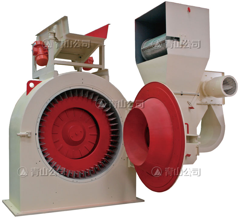 Double-stream mill consists of feeding system and milling system, the feeding system consists of vibrating feeder, magnetic eparator, heavy objects separator ,and the milling system consists of machine seat, screen ring, vane-wheel, main shaft and driving unit etc.