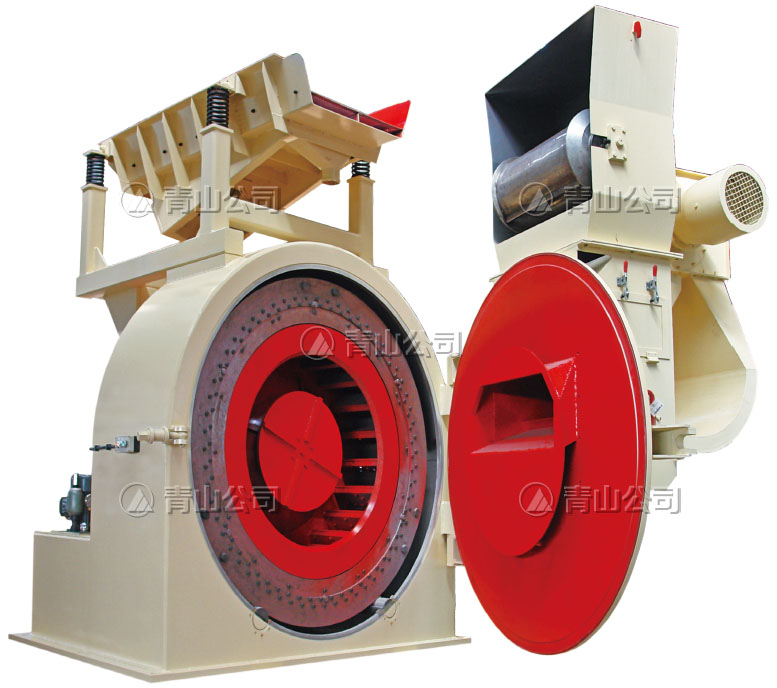 環(huán)式刨片機(jī)主要分為進(jìn)料系統(tǒng)和刨片系統(tǒng)兩部分, 前者由振動(dòng)給料器、磁選滾筒、重物分離器組成,后者由刀環(huán)、葉輪、機(jī)座、主軸、驅(qū)動(dòng)、液壓系統(tǒng)、制動(dòng)系統(tǒng)等組成。